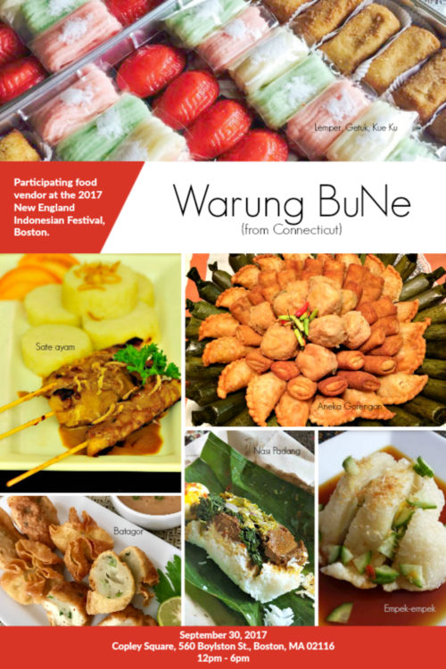Supported by dozens of vendors and performers coming from all over New England and beyond, our team is working hard to bring you an IndoFest experience you’ll remember with fantastic and tastiest choice of Indonesian food, dancing, music and more. We are extremely excited to see both familiar and new faces this year, so please save the date, come say hi and enjoy the day!