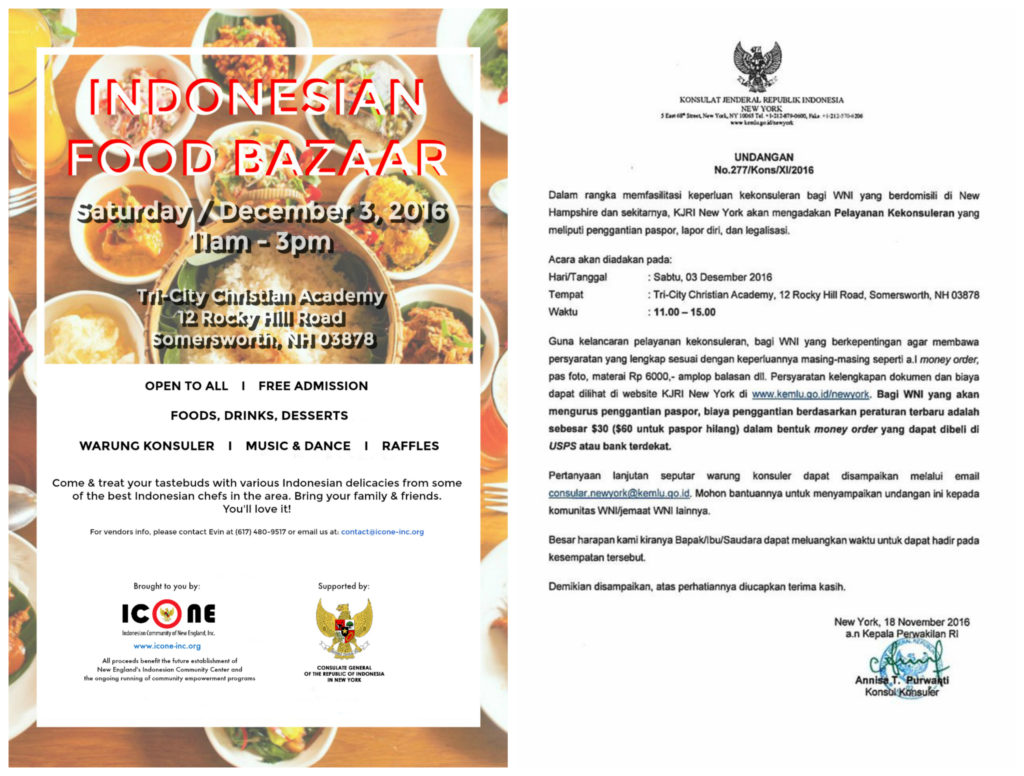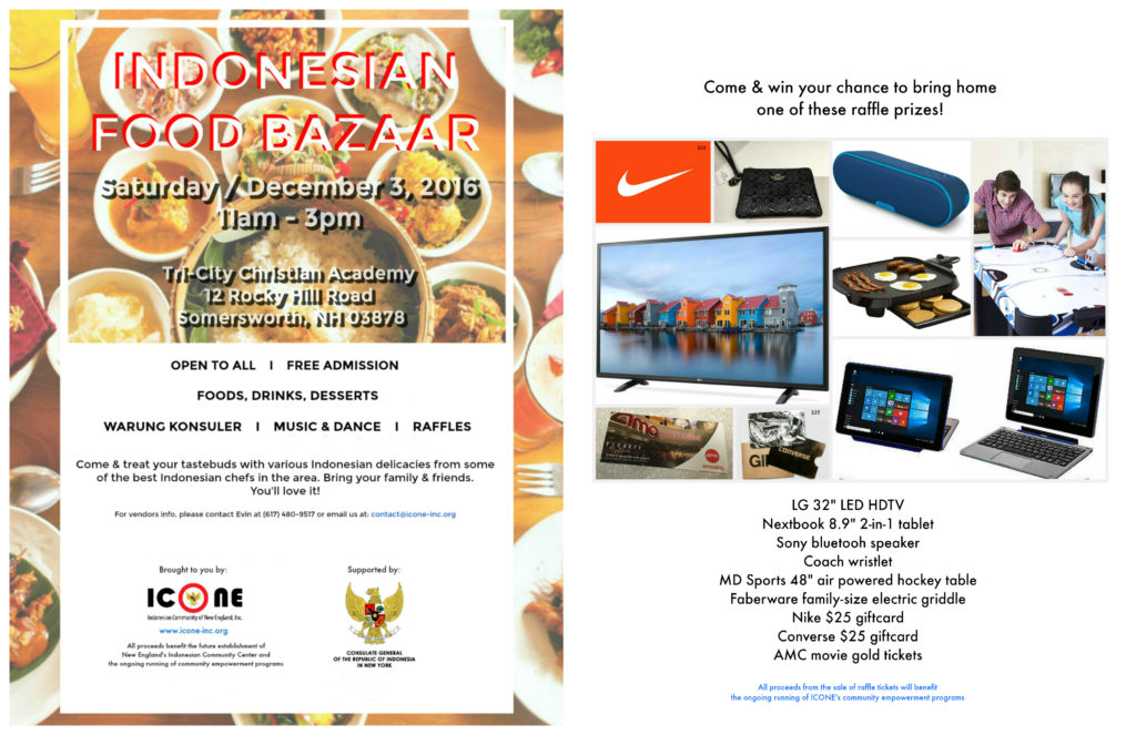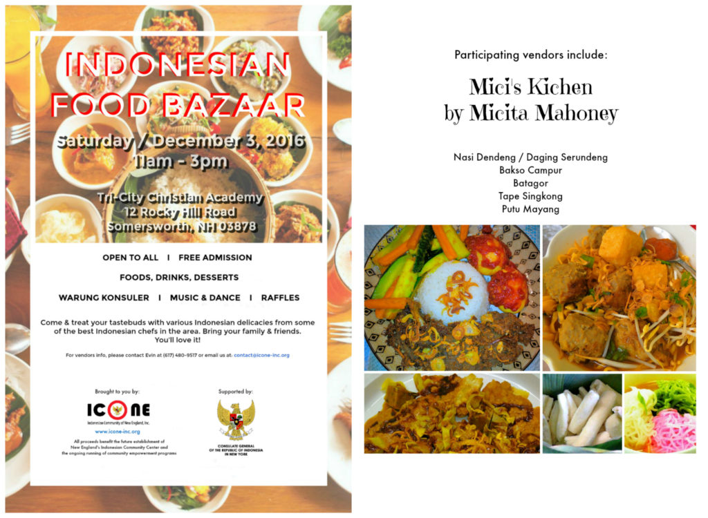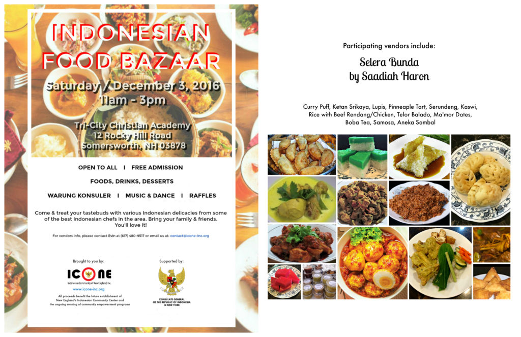 Come & join us for a fun-filled Saturday, tomorrow December 3rd 2016, with family & friends at our 3rd Indonesian Food Bazaar in Somersworth, New Hampshire!